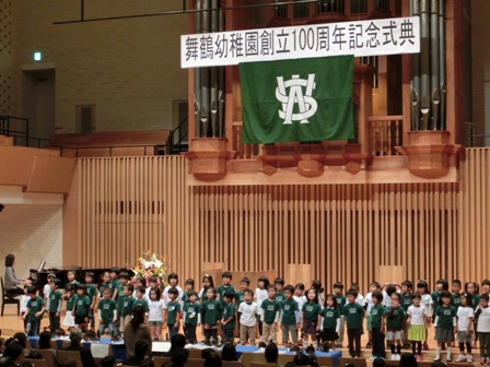 舞鶴幼稚園創立100周年記念式典、祝賀パーティーが開催されました2013年11月9日(土)、舞鶴幼稚園創立100周年記念式典が西南学院大学チャペルにて