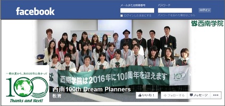 【創立100周年記念事業】西南100th Dream PlannersがFacebook,Twitter公式アカウントを開設しました。西南学院の在校生の視点で、創立100周年を祝うイベントの企画をしている、