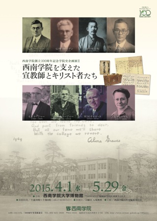 【創立100周年記念事業】学院史企画展Ⅱ「西南学院を支えた宣教師とキリスト者たち」のご案内 西南学院創立100周年記念事業の一環として、下記のとおり今回で第二弾となる