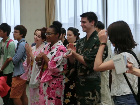 「異文化コミュニケーション論」の授業では先生、学生が浴衣姿で参加し、