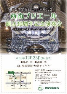 【創立100周年記念事業】西南プリエール創立30周年記念演奏会のご案内