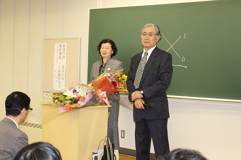 江副憲昭教授が最終講義を行いました。江副教授は、ミクロ経済学、 規制に関する