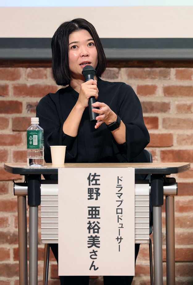 佐野さんは講演の中で、ディレクターとプロデューサーの違いについて、レストランに例えるとディレクターはスーシェフで食材を使って料理を作る現場のボス的な役回り、プロデューサーはオーナーでレストランはどんな立地でどんなジャンルの料理を提供するのかといった全体の計画や企画を作る役回りであると語りました。また、ドラマプロデューサーとして大事にしていることは、制作現場での役者やスタッフの動き、様子をしっかり見て、その日に難しいシーンを演じたり長いセリフをやりきったりなど、がんばった方にはきちんと言葉をかけたりお礼を伝えることだと語りました。