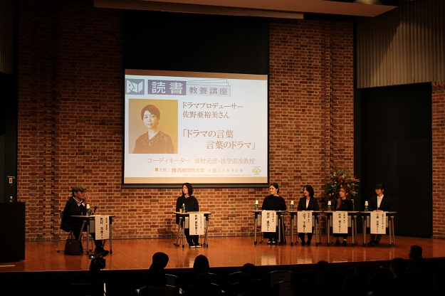 10月10日(金)、ドラマプロデューサーとしてご活躍されている佐野亜裕美さんを講師に迎え、「ドラマの言葉、言葉のドラマ」をテーマに読書教養講座を開催しました。会場となった西南コミュニティーセンターには、約180人の教職員や学生、一般の聴講者が来場しました。