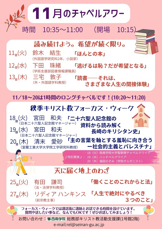 ◎11月のチャペルアワーの詳細は、ポスターをご覧ください。