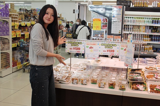 また、「からあげフルフル からフル」を企画したグループの町本花乃さん(商・商3年)は、「これまで消費者の視点しかなかったが、今回の商品企画・開発に携わることで生産者や商品提供者の視点で考える経験ができ、たくさんの気づきがあった」とコメントしました。